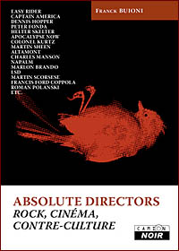ABSOLUTE DIRECTORS : Rock, Cinéma Et Contre-Culture est l’œuvre d’un journaliste déjà responsable d’un très bon bouquin paru aux éditions Camion Blanc sur l’archange Peter Gabriel…Mais cette fois ci, bien loin des préoccupations du Rock progressif des années 70 et de la World music des années 80, Franck Buioni a choisi de s’intéresser au parcours hors normes de quatre cinéastes issus de la génération 60’s aux USA, quatre cas à part, et gros fouteurs de merde, chacun dans un créneau bien distinct (et pour certains, contre leur volonté d’ailleurs…).