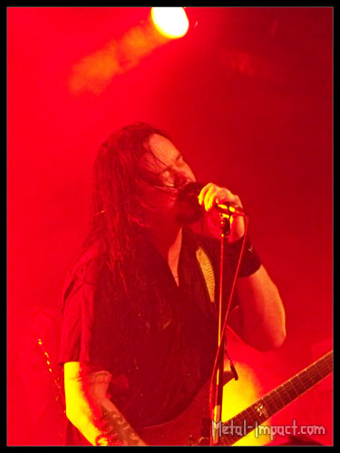 L'enchaînement « Blinded » - « The End Of Your Days », qui débutait les concerts d'EVERGREY ces dernières années, fait mouche. Le refrain du premier est repris en choeur par le Nouveau Casino qui se lâche enfin, alors que les riffs assassins du deuxième donnent lieu à de furieux headbangs. On laisse la scène à Henrik pour le traditionnel solo qui annonce un nouveau hit, « The Masterplan ». Chauffé à blanc, le public n'attend que les premières notes de clavier pour hurler, lui qui devait attendre impatiemment ce morceau aux allures hymniques. On regrettera simplement que certains choeurs soient samplés. Aucun temps mort dans cette soirée concentrée en moments forts, « Still In The Water », puis « Monday Morning Apocalypse » s'enchaînant rapidement, et surtout proprement. Moins éméchés qu'à leur habitude, nos chevelus font le boulot avec application et professionnalisme.