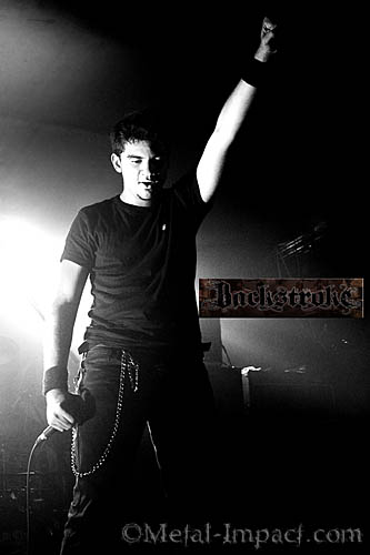 Le set de BACKSTROKE était déjà largement entamé, et je n’eus droit qu’aux deux derniers morceaux, assez emprunts de classicisme Death de bon aloi. Les zicos sont jeunes, ont la faim au ventre, et la possibilité de passer en première partie de deux groupes aussi cultes et hauts en énergie a du les booster a mort.