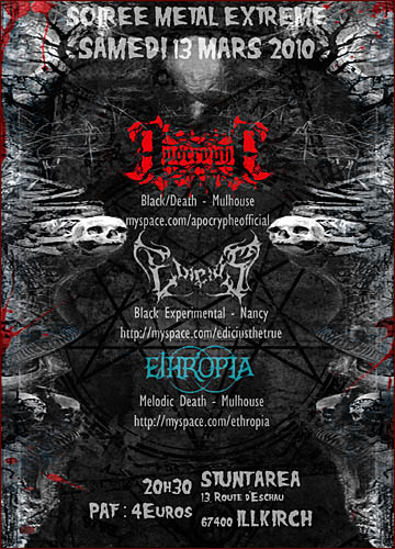 Groupes Présents au concert : ETHROPIA (FRA), EDICIUS (FRA), APOCRYPHE (FRA)
