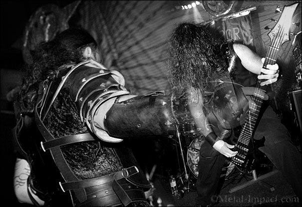 C'est aux canadiens d’EX DEO d’avoir la faveur d’ouvrir la soirée. Des bannières SPQR surmontées d’aigles impériaux sur scène, la bande sonore du film "300" en fond, les musiciens en tenue de légionnaire font leur apparition sur scène. Leur death mélodique a très vite chauffé l’atmosphère du Poste à Galène. Le public accroche rapidement aux compos entrainantes d’un tempo assez lent et lourd. Ce fut une bonne entrée en matière pour un show qui promet d'être fracassant.