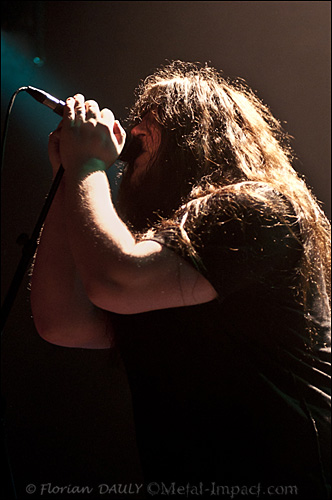 KATATONIA et son chanteur, qui avait mis son T-Shirt à l'envers pour l'occasion, ont décidé de décomposer la soirée en 2 actes. C'est donc en interprétant l'intégralité de l'album Last Fair Deal Gone Down, sorti il y a tout juste 10 ans, que le groupe entame cette soirée. L'éclairage épuré nous plonge dans une ambiance de concert privé. Une première partie très douce, peut être même un peu molle pour qui n'est pas un fan inconditionnel de cet album, d'autant plus que les enchaînements sont parfois un peu longuets. Les titres se succèdent suivant l'ordre de l'album pour terminer tout naturellement sur le très bon Don't Tell A Soul.