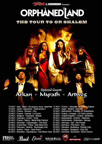 Quelques mois après son passage au Hellfest 2011, ORPHANED LAND est de retour en France pour promouvoir son album live sorti le mois dernier. Pour l’occasion, les Israéliens ont réunis des formations d’horizon divers pour une tournée en l’honneur de la paix baptisée « The Tour to OR Shalem ». La « première tournée de Metal oriental de l’histoire », d’après le chanteur d’ORPHANED LAND Kobi Fahri, fait donc étape à Limoges, pour une soirée placée sous le signe de l’amitié entre les peuples et du mélange des cultures.