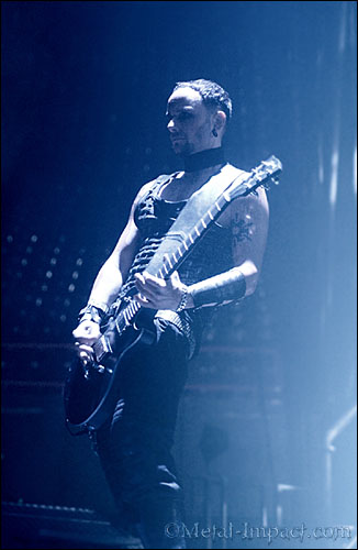 Paul. Non, cette orientation ne me frustre pas du tout, je suis même très content de cet album ! Il faut toujours trouver le bon compromis entre la nouveauté et la tradition. On pourrait faire comme AC/DC qui refait sans arrêt le même album, mais nous préférons évoluer sans cesse. Notre batteur, Christophe trouve son compte dans cette évolution, car il s’ennuie très vite à jouer toujours le même rythme, boum, boum (Paul martèle la table en rythme)! Il a énormément travaillé ces dernières années et il a envie de montrer de quoi il est capable, ce qui est normal et très bien ! Pour les fans de rythmes martiaux, je ne saurais que trop conseiller COMBICHRIST, notre groupe de première partie, ils seront servis !