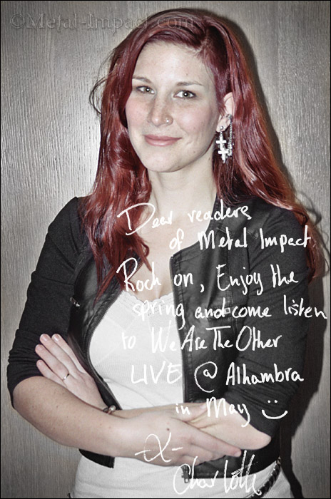 Charlotte. Whao, je serai contente déjà que les gens prennent la peine de l’écouter ou au moins essayent de s’intéresser aussi à ce que j’ai voulu faire passer à travers les textes. Ce serait fantastique ! C’est un disque que j’ai fait avec cœur, je souhaiterais que les gens en retirent quelque chose de positif et de bon. Et surtout n’oubliez pas que We Are The Others sort le 4 juin 2012 et qu’on sera à Paris en concert à l'Alhambra le 11 Mai 2012 ! Et qu’il y a une édition limitée qui sort avec des titres bonus mais je ne sais pas encore lesquels à la date d'aujourd’hui.