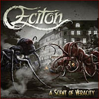 ECITON, le nom m’est évidement familier mais bien sur, pas moyen de remettre une chanson, un album, une image ou une note sur ce patronyme. C’est donc avec beaucoup d’amusement que j’ai parcouru la chronique du premier opus d’ECITON, Oppressed, que j’avais rédigée il y a plus de deux ans. Tout a évolué. A en croire mes dires, ce premier opus naviguait dans des eaux encore troubles, polluées d’un Death brutal bête et méchant. Je fustigeais jadis le manque de visibilité du groupe danois, son passéisme, ses silences et son manque d’activité. De là à dire que j’ai été entendu… Les faits sont là : l’été 2010 s’est installé sur la France, les plages sont peuplées de touristes et le moment semblait propice aux scandinaves pour livrer A Scent Of Veracity, deuxième effort qui a finalement réussi à trouver le chemin des bacs après un chemin de croix vieux de quatre ans.