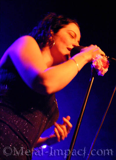 Place aux maîtres de la soirée maintenant ! C’est devant un public que l’on sent conquis à l’avance que THE GATHERING entre sur scène. A ma grande surprise, je constate que le groupe n’est pas le moins du monde dans une configuration acoustique : en fait, il va se contenter de jouer ses vieux morceaux tels qu’ils ont été ré-arrangés pour le live « Sleepy Buildings », c’est-à-dire qu’on retrouvera une plus large place pour les sons clairs, le piano et surtout la voix d’Anneke, bien entendu, sur laquelle plus que jamais la prestation reposera. Et une nouvelle fois, la miss saura se montrer digne de son rôle, impériale d’un bout à l’autre de la prestation : sa technique est plus que jamais impressionnante de perfection, mais aussi et surtout de par les émotions qu’elle insuffle dans chacune de ses lignes de chant. Une performance qu’elle tiendra constante pendant plus d’une heure et demie de show tout de même : je suis toujours épaté par tant de maîtrise ! Les autres musiciens – dont la nouvelle bassiste qui a apparemment vite su trouver sa place – s’ils sont donc plus dans l’ombre que d’ordinaire, sont encore une fois remarquables de feeling et ne sont eux non plus jamais pris en défaut. La set-list reprend donc les morceaux de « Sleepy Buildings », agrémentés de quatre extraits de « Souvenirs » savamment placés et qui bien entendu ne dénotent en rien, bien au contraire. Les temps forts seront à mon goût l’enchaînement « Souvenirs » / « The Travel » dont le final est à mourir sur place, « Sleepy Buildings » et ses parties de piano jazzy, « In Motion Part 2 » et sa montée en puissance particulièrement efficace au milieu de l’ambiance très calme de la soirée… Et que dire de ce rappel avec un « Black Light District » toujours aussi prenant, qui a clôturé le concert de façon tonitruante !