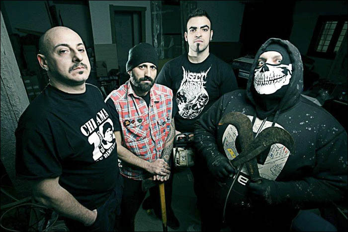 J’ai bien l’impression que le retour annoncé de Silvio « Bunga-Bunga » Berlusconi sur le devant de la scène politique est un fait de jeu qui excite tout le monde. C’est d’autant plus néfaste pour la tension quand on s’appelle BUFFALO GRILLZ, qu’on est italien, qu’on fait du Grind et que la « Shitaly » fédère en musique un esprit de révolte. Croisement improbable entre BRUJERIA et NAPALM DEATH, ces Romains sont revenus récemment perturber l’actualité avec Manzo Criminale, un deuxième album qui se moque ouvertement du monde. A grands renforts de tubes glaçants et cyniques comme « Pig Floyd », « Dimmu Burger » ou « Linkin Pork », les Transalpins titillent les égos. Alors forcément, on a voulu en savoir plus en compagnie de Cinghio, guitariste de la bande, qui s’est laissé aller à d’étonnantes et franches confessions. Entretien avec les nouveaux génies du Grind italien.