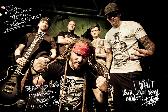 Interviewer les gars de THE ARRS, ce n'est pas aussi simple qu'il y paraît. Laissez les boire un peu, et ils vous parleront toute la nuit. Bon, aucun abus d'alcool n'a été fait, mais il est vrai que le frontman s'est montré plus loquace à mesure que cette interview se déroulait. Et derrière ce physique bourru se cache surtout un gros nounours. On pourrait les croire désinvolte, ils ne sont simplement pas plus sérieux que cela, que ce soit sur scène ou en face-à-face. C'est leur façon d'être, sans pour autant sacrifier leur intégrité. THE ARRS s'est bien développé parmi le paysage Hardcore/Metalcore français depuis son premier disque, et c'en est désormais un acteur à part entière. Cela n'empêche pas le groupe de constamment changer la donne, que ce soit sur le précédent album Héros Assassins qui plongeait dans les ambiances théâtrales, ou leur dernière sortie en date, Soleil Noir, qui annonçait un renouveau visuel, musical et thématique de la formation. C'est donc au cours d'une sympathique petite soirée printanière, placée sous le signe du Hardcore, et organisée aux limites du centre ancien d'Orléans que j'ai pu échanger quelques mots avec les Franciliens sur leur actualité, à l'aube de leur retour en grandes pompes au Hellfest.