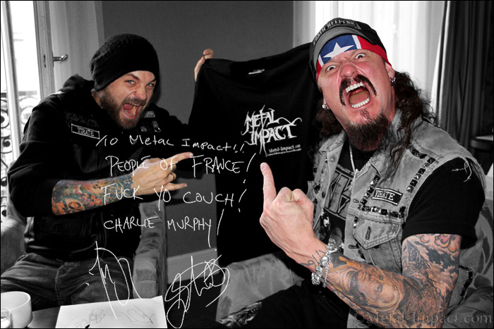 Jon. Eh bien, en fait nous avions pas mal de chose très importantes à régler hier. On a donc pas eu la soirée traditionnelle avec VOLBEAT. Ca n'a pu se conclure de cette manière hier soir mais Stu et moi nous nous sommes rencontrés hier soir, au coin d'une rue...