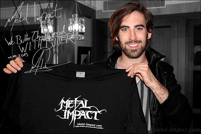 WE BUTTER THE BREAD WITH BUTTER, voilà un nom original qu'on pourrait croire tout droit sorti d'un roman de Kafka sous amphétamine ! Que Nenni, il s'agit tout simplement du dernier combo teuton pratiquant un Deathcore mélodique à tendance électro qui semble petit à petit s'imposer sur la scène internationale. Le groupe s'est formé en 2007 et était composé à l'origine de Marcel Neumann chanteur et batteur de son état accompagné de Tobias Schulka qui assurait quant à lui toutes les parties de guitares sans oublié la basse ! Une véritable équipe d'homme orchestre multi instrumentistes capable de composer des merveilles musicales. Un vrai duo de choc qui sera très vite repéré par le label Redfields Records ce qui leur permettra de sortir leur premier méfait en 2008 au doux nom de Das Monster Aus Dem Schrank. La particularité du gang est un chant en Allemand qui leur permet de se démarquer de la plupart des autres formations même si ils sont loin d'être des précurseurs en la matière. Ils tourneront toutefois en terre teutonne afin d'assurer la promotion de leur premier rejetons. En 2010 sort leur deuxième opus Der Tag An Dem Die Welt Unterging qui va confirmer toute l'efficacité du groupe. C'est aussi à cette époque qu'ils seront rejoints par trois nouveaux musiciens afin de pouvoir être plus performant sur scène ! Cette fois la machine infernale est lancée et rien ne va plus l'arrêter. En 2012, Projekt Herz déboule dans les bacs et sera une totale réussite tant artistique que commercial ! Un vrai must qui va leur permettre de sillonner la planète et d'imposer leur Metal Indus teinté d'électro ! Fort de ce succès, les lascars retournent très vite en studio afin de donner un digne successeur à Projekt Hertz ! Ce sera Goldkinder, une véritable pépite qui sort le 9 août 2013 et confirme la nouvelle orientation musicale de nos Germains. Profitant du passage de Maximilian Pauly Saux dans la capitale, MI est parti à sa rencontre afin de soumettre notre ami bassiste à la question. Rencontre avec un personnage sympathique, humble, totalement dévoué à sa musique et encore tout étonné du succès de WE BUTTER THE BREAD WITH BUTTER. Magnéto Maximilian, c'est à toi !
