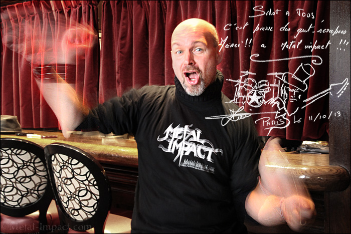 GUT-SCRAPERS est un gang qui nous vient du Gard là ou le soleil torride brille en permanence, l'endroit rêvé pour siroter des cocktails tranquillement installé au fond d'un transat au bord de la piscine ! Une ambiance peut propice au Metal ! Pourtant les GUT-SCRAPPERS ne font pas dans la dentelle, bien au contraire. Ils pratiquent un Hard Roll des plus explosif spécial Bikers. De quoi vous requinquer les neurones en quelques minutes. Ici rien que du très bon Rock bien gras très influencé par le Hard US. Un style parfait pour passer une bonne soirée autour d'un barbecue, une mousse ou un Jack à la main, ambiance roots assurée. Si le groupe s'est formé en 2008, il leur aura fallu cinq longues années pour nous exploser les tympans avec leur premier album Gimme Your Soul ! Il faut dire qu'entre temps nos Nîmois n'ont pas cessé d'écumer les clubs dans leur fief et à travers toute la France ! Cela leur a valu une réputation scénique plus qu'explosive qui s'est répandue comme une trainée de poudre à travers tout l'hexagone. Une de leur spécialité étant de monter sur le comptoir tout en continuant à dégainer les décibels dans une ambiance surchauffée ! Du grand art à n'en pas douter ! Si les bougres n'hésitent pas à jouer partout et dans n'importe quelles conditions, ils ont eu aussi l'opportunité d'assurer quelques premières parties de prestiges que ce soit avec les CRUCIFIED BARBARA ou encore les FATALS PICARDS. Le combo sudiste n'est pas du genre à tourner autour du pot et n'hésite pas à affirmer haut et fort ses convictions. Il suffit d'écouter "Cheers Motherfuckers" ou "You Suck" pour comprendre de quoi il en retourne. Ici les textes tournent autour des filles, des voitures, de l'alcool et des copains ; un alliage parfait pour leur Rock mâtiné d'une bonne dose de Hard ! GUT-SCRAPERS c'est avant tout une bande de potes qui a envie de prendre du plaisir et ça se ressent totalement à l'écoute de Gimme Your Soul. Les lascars sont là pour faire la fête et partager un bon moment avec toux ceux qui sont venus les voir. Profitant de leur passage dans la capitale afin d'assurer la promotion de leur progéniture, MI en a profité pour passer au grill Pierre Mercier (batteur de son état et membre fondateur des GUT-SCRAPERS). Rencontre avec un personnage fort sympathique doté d'un accent qui trahit immédiatement ses origines et qui fait plaisir à entendre. On nage ici en pleine ambiance provençale et on pourrait même en oublier que nous sommes au Hard Rock café ! Magnéto Pierre, c'est à toi !