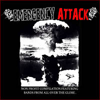 Ce sont plusieurs collectifs qui s'y sont collés. On trouve à gauche Klinik 66, un genre de groupement DIY d'Indonésie, les INVALID BRAIN, groupe de Crust Punk, et Atomic Pollution. Ces trois là, et bien d'autres, défendent l'éthique du Do It Yourself, combattent le consumérisme qui gangrène la société, la mondialisation, et la dictature de pensée. Alors, comme ils sont conscients qu'une idée se répand encore plus vite qu'un virus, ils essaient d'en inoculer à la population le plus souvent possible. Emergency Attack est la dernière en date, et la plus massive. Les trois acolytes ont rassemblé sur un même support digital trente deux groupes venant de tous les coins du globe et possédant les mêmes points communs. Musique ad hoc, idéologie en phase, et refus des grands circuits de distribution. Vous trouverez donc dans ce fichier pas mal de bonnes choses, en l'état, et il y a de quoi vous occuper un bon moment.
