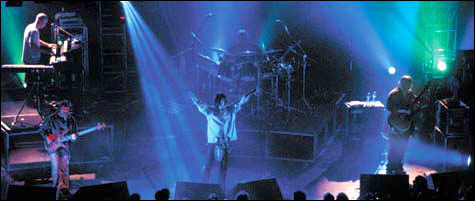 A 20h, les lumières s’éteignent à nouveau et le public entre dans un véritable état d ‘effervescence alors que les musiciens de MARILLION débarquent sur scène. Vu l’ambiance autour de moi, il me paraît clair que le groupe est la cible d’un véritable culte qui n’a pas faibli avec les années (plus de vingt ans de carrière tout de même !) : moi qui ne connais "que" trois albums, et encore, approximativement, j’ai eu limite l’impression de faire tâche à côté de ce public qui reprend toutes les paroles, y compris celles du dernier album. C’est d’ailleurs ce dernier qui – si j’ai bien compris - a fait l’objet de la première heure du concert, une première heure absolument hypnotisante. Même sans connaître, impossible de ne pas être transporté par de tels morceaux, très planants, parfois puissants aussi, et sujets à une interprétation juste et débordante d’émotions. Une large place est laissée au chant – assuré par un Steve Hogarth totalement habité – et aux excellents solos de guitare de Steve Rothery, exemplaires de mélodie et de feeling. C’est bien simple, chacun de ses chorus me flanquaient des frissons ! Après une entracte express, les musiciens reviennent pour une nouvelle heure de jeu, dont la set-list va cette fois piocher dans les anciens albums, dévoilant toute la richesse du répertoire de Marillion. Je serais bien incapable de mettre un titre sur les morceaux joués mais j’ai crû au moins reconnaître plusieurs extraits de "Anoraknophobia" et "Season’s End" ; par contre, rien de "Misplaced Childhood". Steve Hogarth se lâche de plus en plus au fur et à mesure du concert et c’est bien peu de dire qu’il a l’air de vraiment prendre son pied sur scène. Sur le second rappel, il finira par chanter juché sur les enceintes, avant d’entamer un dernier morceau visiblement à la surprise générale, y compris celle des autres musiciens ! Au total, on aura eu plus de 2h30 de concert, magique d’un bout à l’autre, devant un public aux anges et reconnaissant… Edifiant ! (9/10)