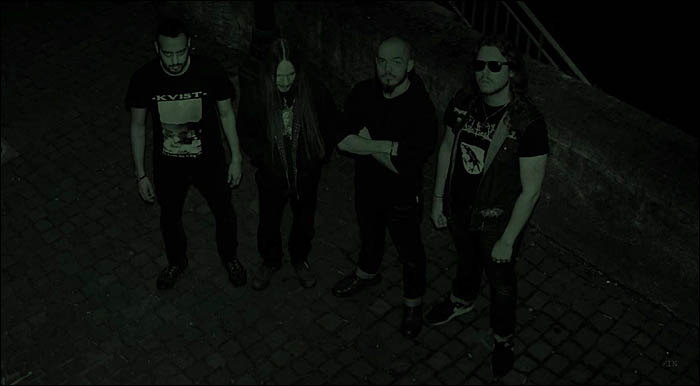 La chance m'a sourit puisque même pas deux semaines plus tard j'ai rencontré Khaled (ORCUS) dans la rue, on a discuté un peu, juste comme ça, et on l'a recruté. A trois on a composé très vite les chansons sur le split CORDYCEPS BASSIANA, c'était une période assez sombre. J'ai le souvenir que certaines répètes se passaient quasiment sans un mot. Tout le monde avait de graves problèmes personnels, et ça s'entend sur le disque. Par la suite j'ai rencontré Tony Ironlungs (basse) et Tristan (guitare lead) que j'ai tout d'abord recrutés comme membres live. On a fait un concert lors d'un festival étudiant merdique, et on l'a sorti par la suite sur EERIE TORTURE en cassette à 15 exemplaires. Peu après on s'est fait signer par Hidden Marly Production (SATANIC WARMASTER, HAPPY DAYS...), pour un deal d'album. J'ai engagé les membres live à temps plein. Kast nous a lâchés à l'été 2014, et on a été en dèche de violoniste pour la composition de l'opus, c'était chaud à mort. Depuis cet été on bosse avec la jolie Jynx, et tout se passe nickel.