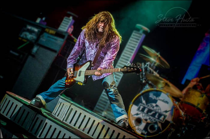 On ne présente plus TESLA, ce groupe US qui a marqué tous les esprits à la fin des années 80 avec des albums incontournables comme Mechanical Resonance ou The Great Radio. Le succès aux Etats-Unis fut fulgurant grâce à des hits comme "Cumin' Atcha Live", "Gettin'Better" ou encore "Little Suzi". Formé en 1984 à Sacramento, la formation se retrouva dès son premier opus sur les routes a sillonner les Etats-Unis de long en large. L'Europe fut quelque peu oubliée et il faudra attendre 1991 pour que nos américains foulent les planches de Bercy en première partie des SCORPIONS. Pendant dix ans, nos amis squattèrent les charts avant de se séparer après l'échec relatif de Bust A Nuts qui fut tout de même certifié or. Il faudra alors attendre six ans pour que TESLA revienne sur le devant de la scène pour une tournée de reformation qui sera couronnée de succès. Ils en profiteront pour sortir Replugged Live. Cet accueil les encouragea à retourner cette fois-ci en studio ou ils enregistreront Into The Now qui prouvera que le combo n'a rien perdu de sa fougue malgré le temps qui passe. Trois ans plus tard, les bougres reviendront avec un opus de reprises enregistré dans des conditions très vintage histoire de retrouver le son des sixties/seventies suivi dans la foulée par Forever More. Il faudra ensuite attendre six longues années pour que TESLA fasse un retour en force avec Simplicity. Une véritable réussite mixée et masterisée par un des maitres de la production des années 80 : Mickael Wagener. Le combo s'apprête d'ailleurs à sortir une nouvelle galette en 2018, les bougres ont retrouvé la foi. Une véritable cure de jouvence quand on sait que le line-up n'a quasiment pas changé depuis leur tous premiers balbutiements. Alors que le combo était en pleine tournée d'été aux Etats-Unis aux côtés de DEF LEPPARD et REO SPEEDWAGON, votre serviteur a pu s'entretenir quelques minutes avec Brian Wheat, le bassiste de toujours et fondateur de TESLA aux côtés de Frank Hannon (à l'époque ou le gang s'appelait encore CITY KIDD). Entretien avec un musicien fatigué et peu loquace mais heureux de revenir en force avec Mechanical Resonance Live, un opus venu célébrer les trente ans de la sortie de Mechanical Resonance qui est la première galette emblématique de TESLA. Elle a été très rapidement certifié platine et reste à ce jour la référence absolue pour de nombreux fans. Magnéto Brian, c'est à toi !