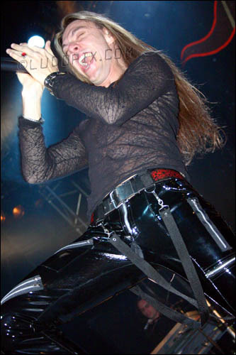 Quand Edenbridge, groupe autrichien de Metal à chant féminin, monte sur la scène de l’Elysée Montmartre ce 16 février 2005, le public est nombreux et déjà chaud malgré le froid qui règne dehors. Mais aux premières notes, quelle déception de constater qu’on n’entend pratiquement pas la très belle voix de Sabine Edelsbacher. A en croire les sound checks auxquels j’ai assisté, elle est pourtant très en voix et cette balance mal faite vient gâcher notre plaisir. Dommage, j’adorerais un bon « Wild Chase » en live mais, sans le chant, ce set paraît fade. Et ce n’est pas la prestation des musiciens qui va rattraper le tout car, s’ils jouent les morceaux correctement, leurs quelques grimaces et jeux de scène semblent contraints. On a l’impression qu’ils n’éprouvent pas de réel plaisir à jouer… (4/10)